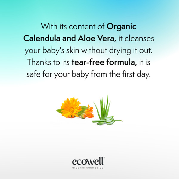 Нежност и грижа за най-малките от първия ден! Специално създаден за косата и тялото на новородените, Ecowell Пяна Шампоан съдържа органичен невен и органично алое вера, които нежно почистват деликатната бебешка кожа, без да я изсушават. Меката пяна се изплаква лесно, а формулата без сълзи не дразни очите, което го прави напълно безопасен за употреба още от първия ден след раждането. Пяната се отмива лесно, включително и люспички от млечни корички (cradle cap). Флакон с помпа за пяна за удобно и икономично нанасяне. Без сълзи – напълно безопасна формула за новородени.