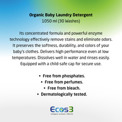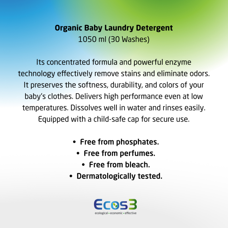 Подарете на бебешките дрешки безупречна чистота и нежна грижа с Ecos3– органичен перилен препарат, създаден специално за чувствителната кожа на най-малките.